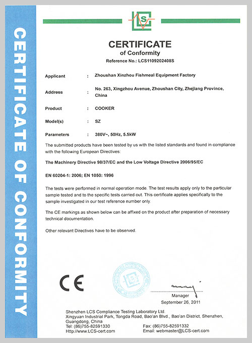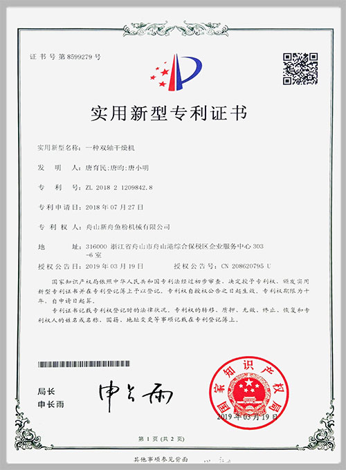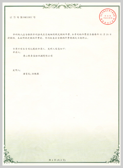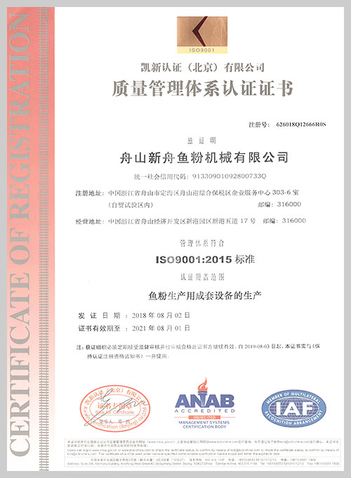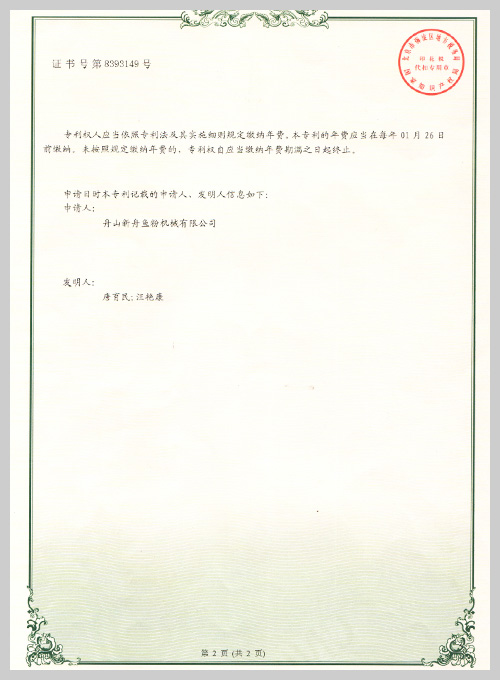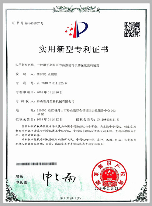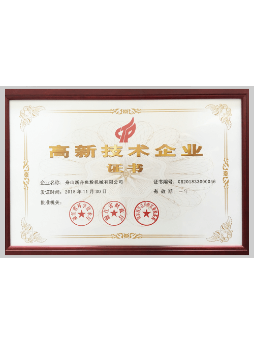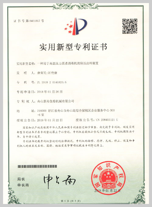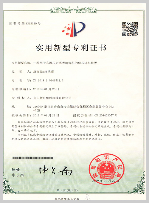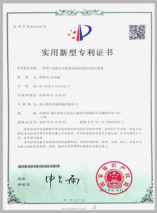 着力于市场创新,获得了多项专利证书。2018年荣获“国家高新技术企业”和“安全生产标准化企业”称号,经权威机构鉴定,通过了CE、PD5500、ISO9001和SGS认证。并先后携手中科院合肥研 究所、浙江大学等有关科研机构探索动物蛋白原料的加工工艺,开发了肉骨粉、发酵与酶解小肽粉设 备,为客户的需求提供了新的解决方案。